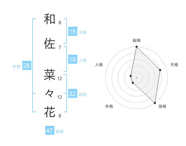 和佐 菜々花さんの総格は47画の5点!