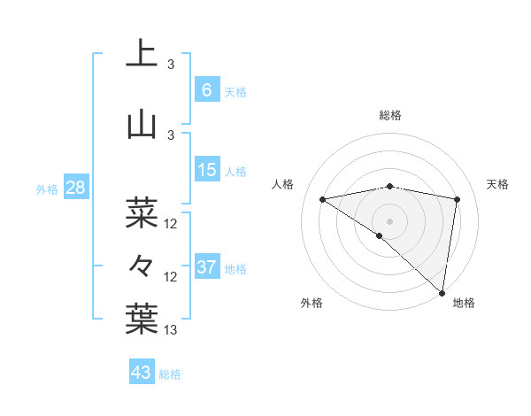 上山 菜々葉さんを姓名の画数から五運を鑑定