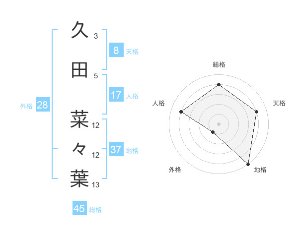 久田 菜々葉さんの総格は45画の4点