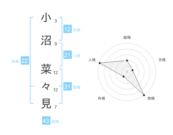小沼 菜々見さんの総格は43画の2点!