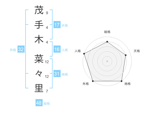 茂手木 菜々里さんの天格は17画の4点!