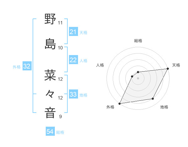 野島 菜々音さんを姓名の画数から五運を鑑定