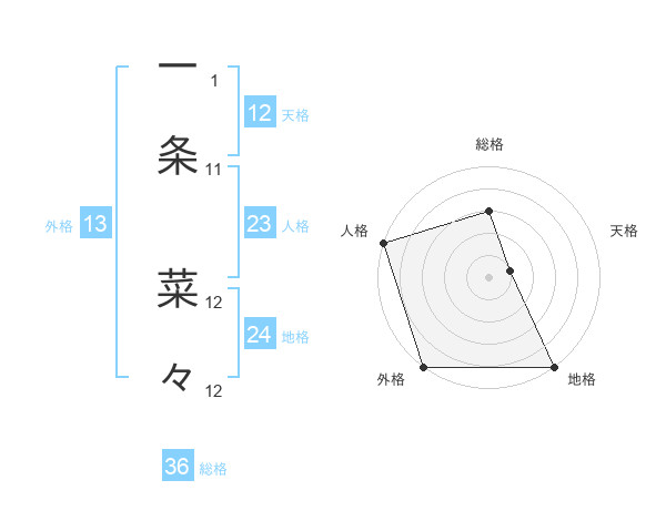 一条 菜々さんの外格は13画の5点!