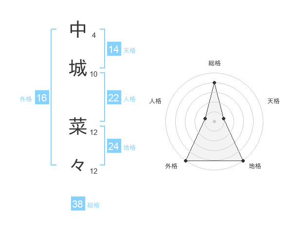 中城 菜々さんの総格は38画の4点!