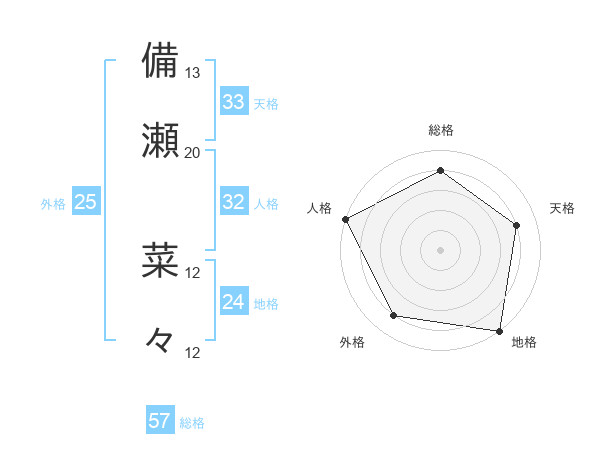 備瀬 菜々さんを姓名の画数から五運を鑑定