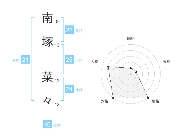 南塚 菜々さんの総格は46画の1点!