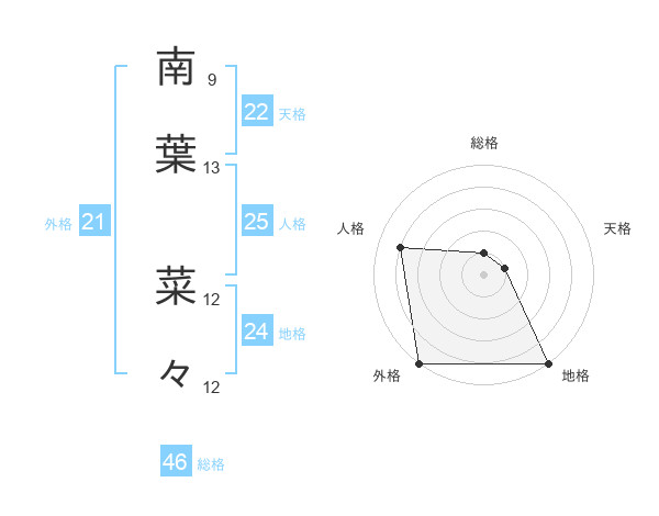 南葉 菜々さんを姓名の画数から五運を鑑定