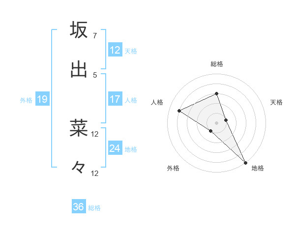 坂出 菜々さんの地格は24画の5点!