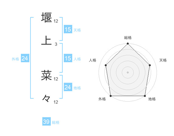 堰上 菜々さんを姓名の画数から五運を鑑定