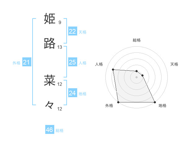 姫路 菜々さんの総格は46画の1点!