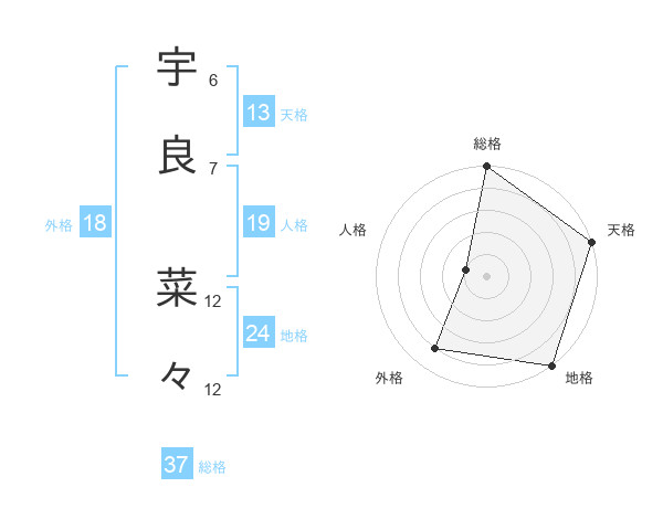 宇良 菜々さんの総格は37画の5点!