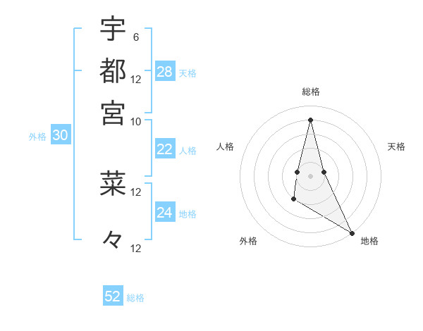 宇都宮 菜々さんを姓名の画数から五運を鑑定