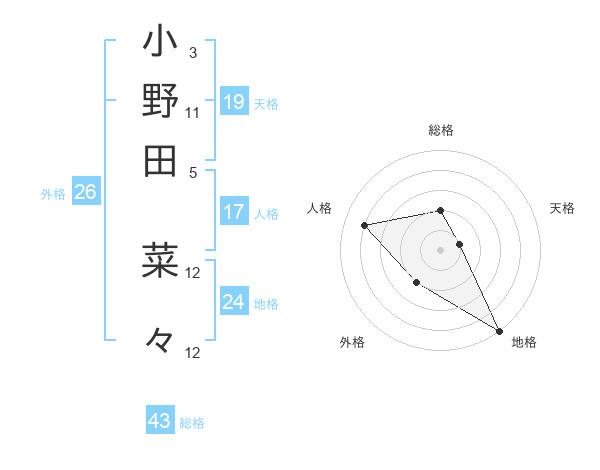 小野田 菜々さんを姓名の画数から五運を鑑定
