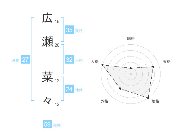 広瀬 菜々さんを姓名の画数から五運を鑑定