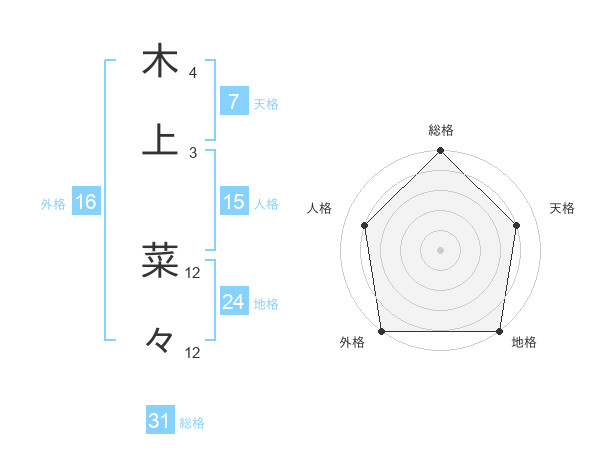 木上 菜々さんの総格は31画の5点!