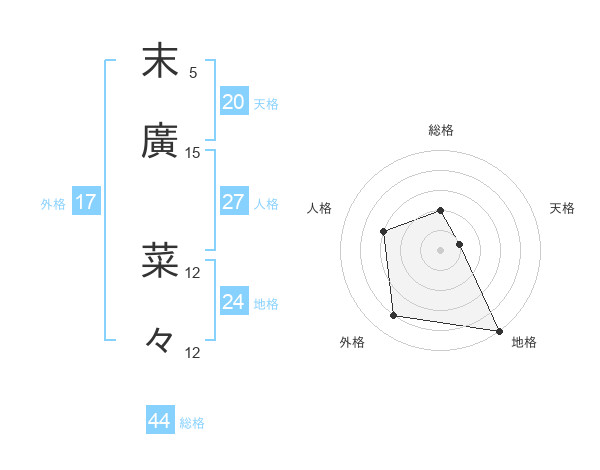末廣 菜々さんを姓名の画数から五運を鑑定