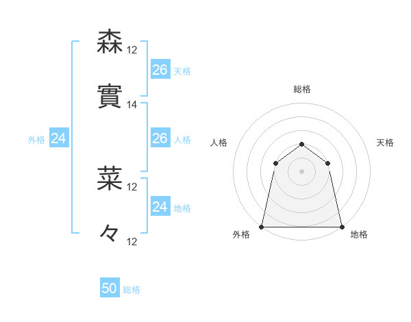 森實 菜々さんの外格は24画の5点!
