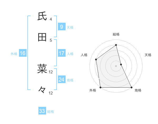 氏田 菜々さんを姓名の画数から五運を鑑定