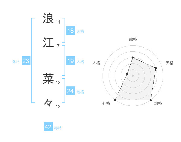 浪江 菜々さんを姓名の画数から五運を鑑定
