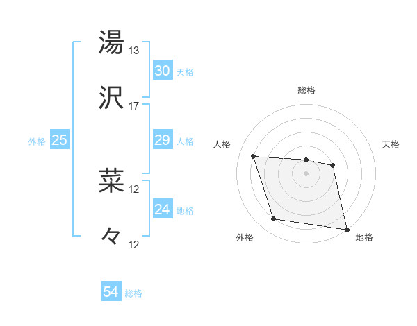 湯沢 菜々さんの天格は30画の2点!