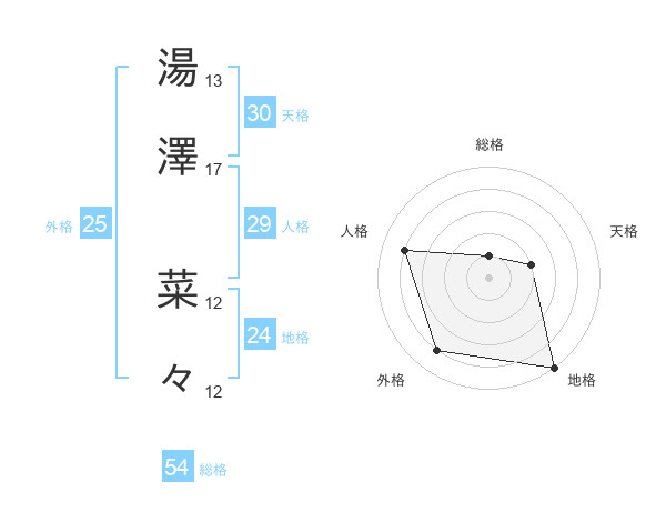 湯澤 菜々さんを姓名の画数から五運を鑑定