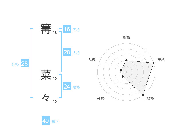 篝 菜々さんの総格は40画の2点!