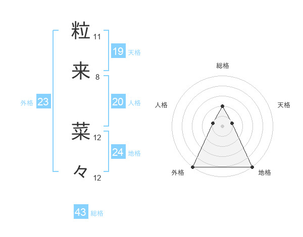 粒来 菜々さんの外格は23画の5点!