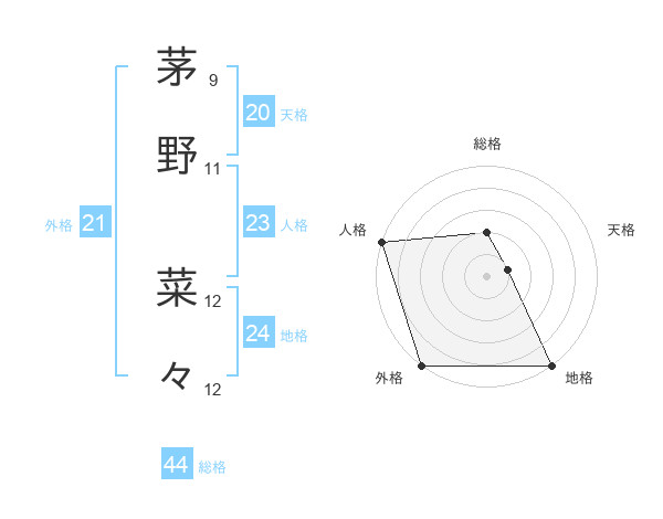茅野 菜々さんの総格は44画の2点!