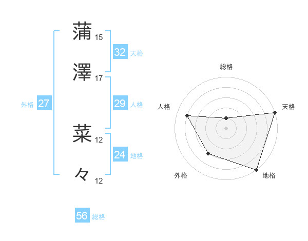 蒲澤 菜々さんを姓名の画数から五運を鑑定