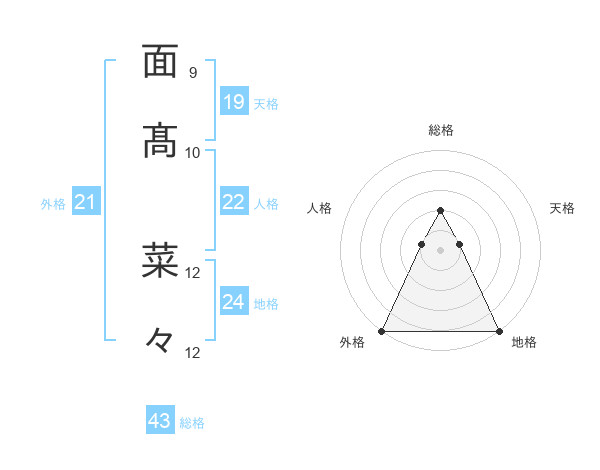 面髙 菜々さんの外格は21画の5点!