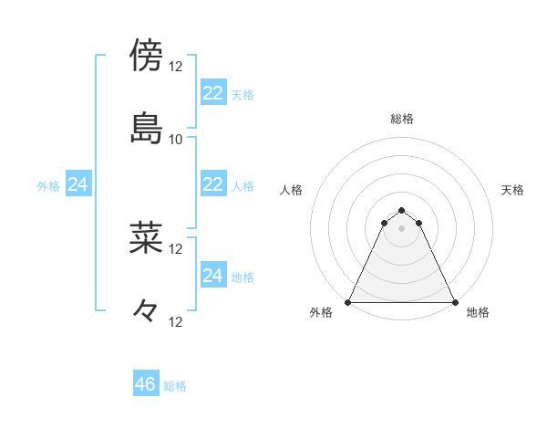 傍島 菜々さんを姓名の画数から五運を鑑定