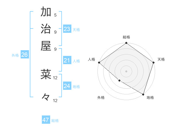加治屋 菜々さんの総格は47画の5点!