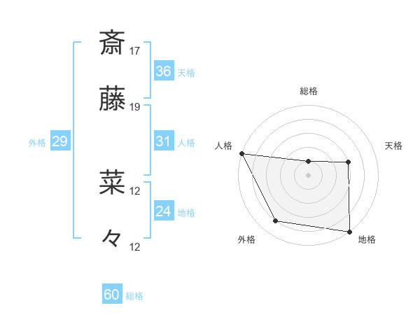 斎藤 菜々さんを姓名の画数から五運を鑑定