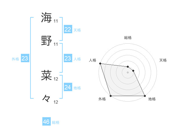 海野 菜々さんの外格は23画の5点!