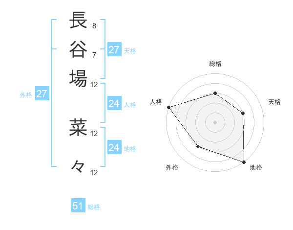 長谷場 菜々さんを姓名の画数から五運を鑑定