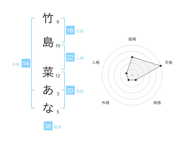 竹島 菜あなさんを姓名の画数から五運を鑑定