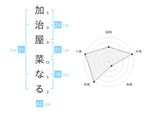 加治屋 菜なるさんの天格は23画の5点!