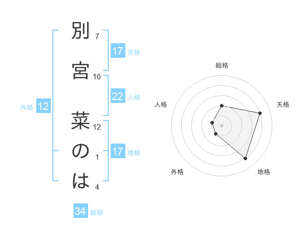 別宮 菜のはさんを姓名の画数から五運を鑑定