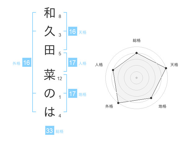 和久田 菜のはさんの地格は17画の4点!