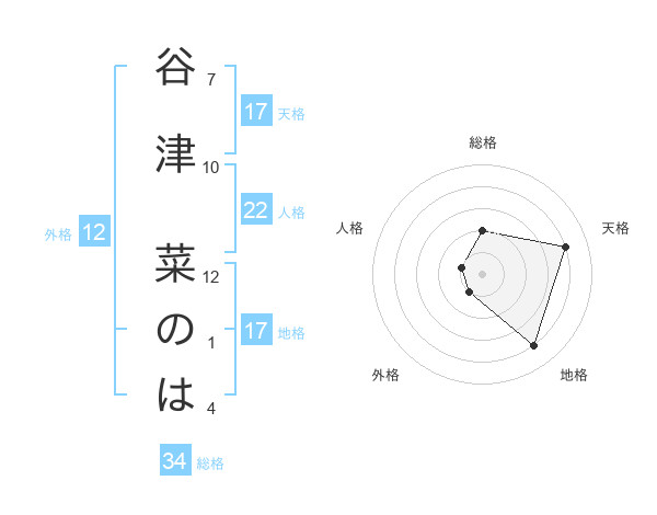 谷津 菜のはさんの地格は17画の4点!
