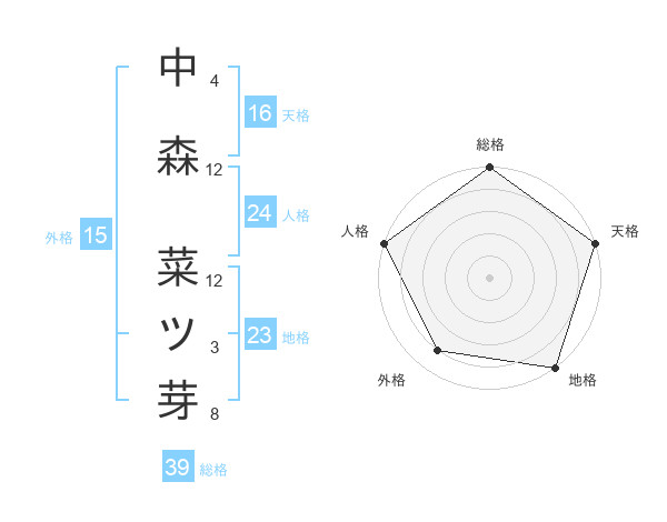 中森 菜ツ芽さんを姓名の画数から五運を鑑定