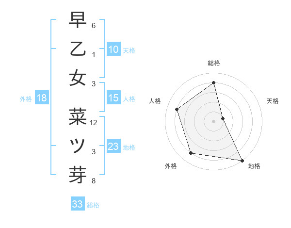 早乙女 菜ツ芽さんの総格は33画の4点!
