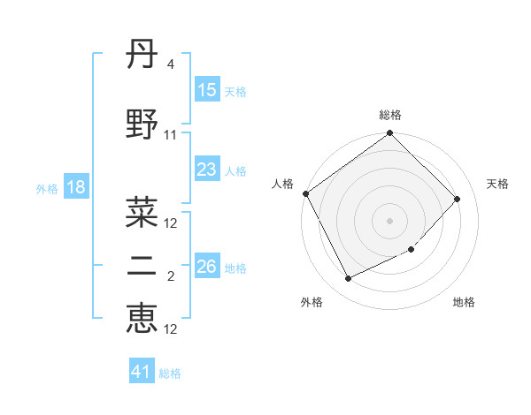 丹野 菜ニ恵さんを姓名の画数から五運を鑑定