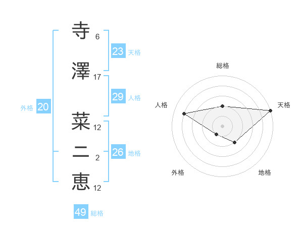 寺澤 菜ニ恵さんを姓名の画数から五運を鑑定