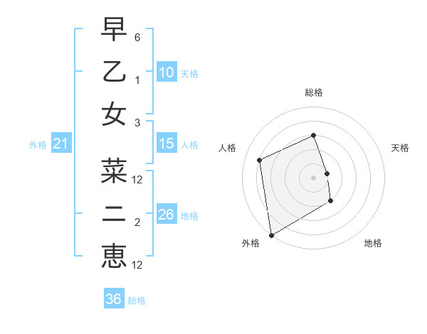 早乙女 菜ニ恵さんの地格は26画の2点!