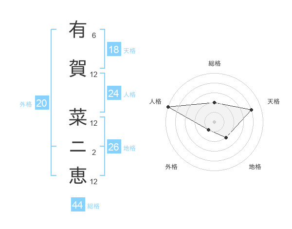 有賀 菜ニ恵さんを姓名の画数から五運を鑑定