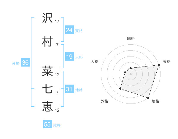 沢村 菜七恵さんを姓名の画数から五運を鑑定