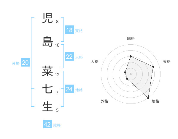 児島 菜七生さんを姓名の画数から五運を鑑定