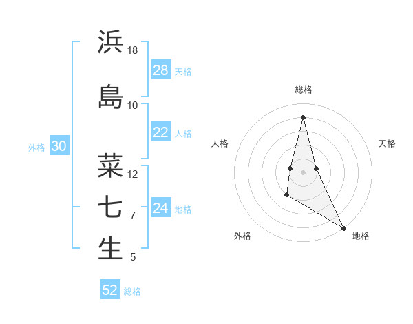 浜島 菜七生さんの総格は52画の4点!