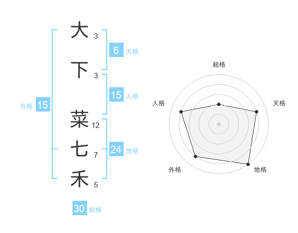 大下 菜七禾さんを姓名の画数から五運を鑑定
